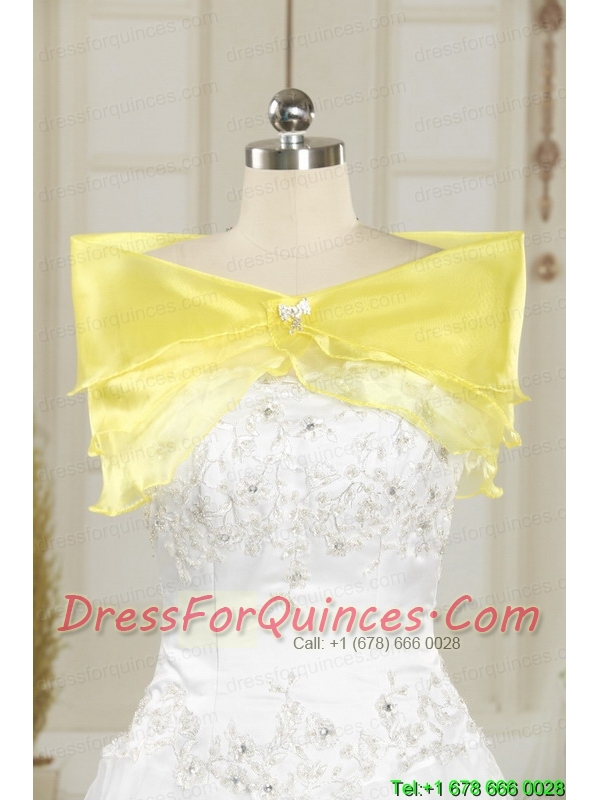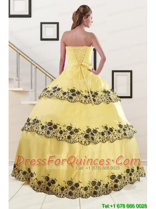 2015 Light Yellow Quinceanera Dress with Appliques and Ruffled Layers