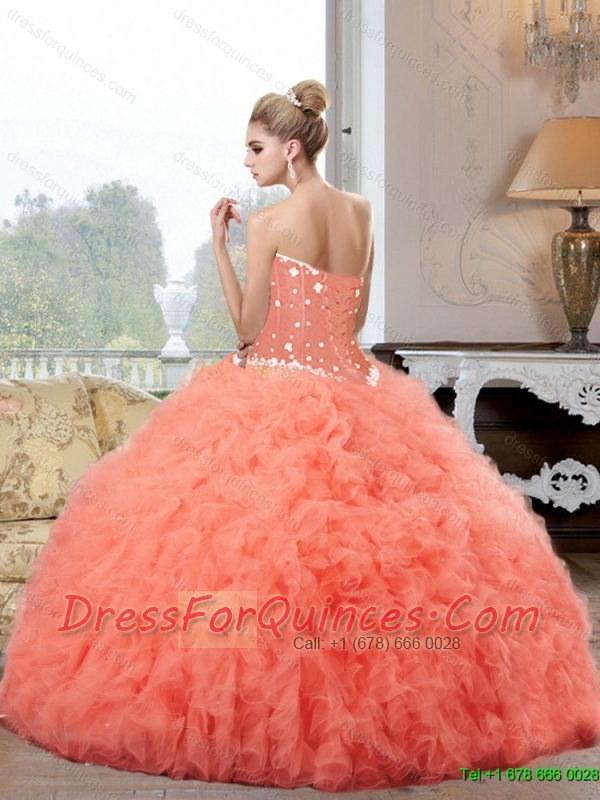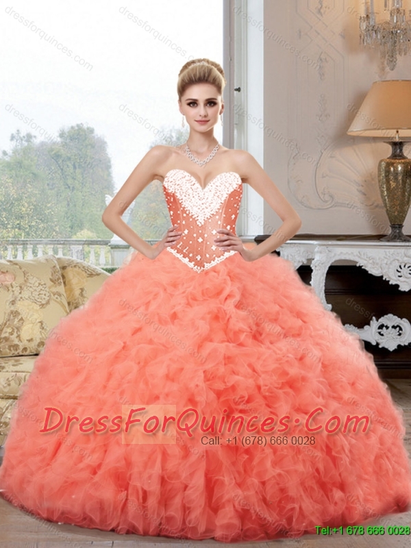 2015 New Style Sweetheart Watermelon Quinceanera Dresses with Beading