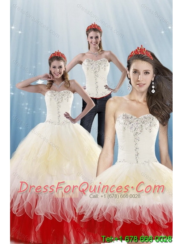 2015 New Styles Multi Color Quinceanera Dresses with BeadingLayers