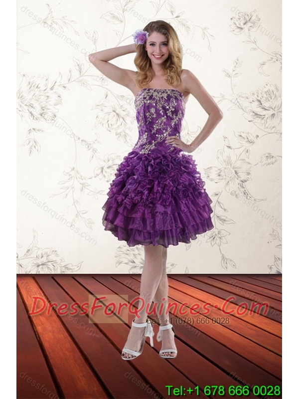 2015 New Styles Purple Dresses for Quince with Appliques and Ruffles