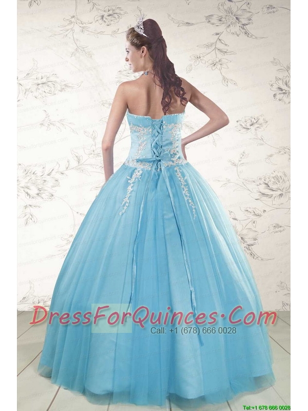 2015 Pretty Aqua Blue Quinceanera Dresses with Beading and Appliques