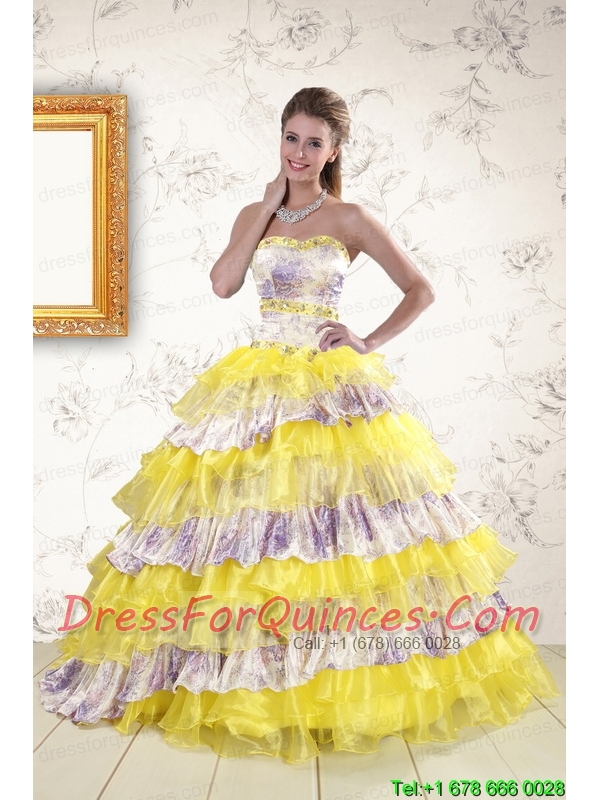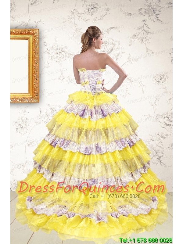 2015 Printed and Ruffles Multi Color Quinceanera Dresses