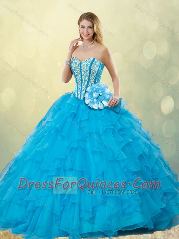 2016 New Styles Beading Detachable Quinceanera Dresses in Aqua Blue