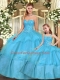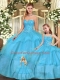 Admirable Aqua Blue Lace Up Sweetheart Beading and Ruffled Layers Quinceanera Gown Organza Sleeveless