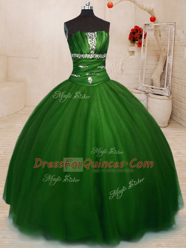 Admirable Tulle Strapless Sleeveless Lace Up Beading Sweet 16 Quinceanera Dress in Green