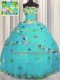 Aqua Blue Sleeveless Tulle Lace Up Ball Gown Prom Dress for Military Ball and Sweet 16 and Quinceanera