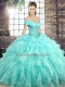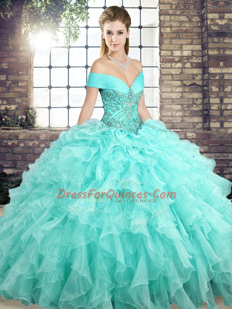 Attractive Aqua Blue Off The Shoulder Neckline Beading and Ruffles Vestidos de Quinceanera Sleeveless Lace Up