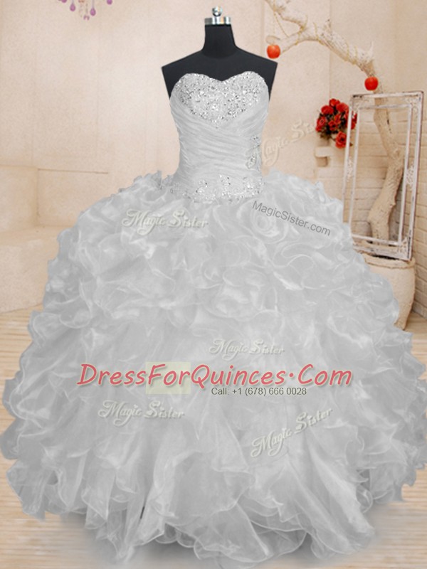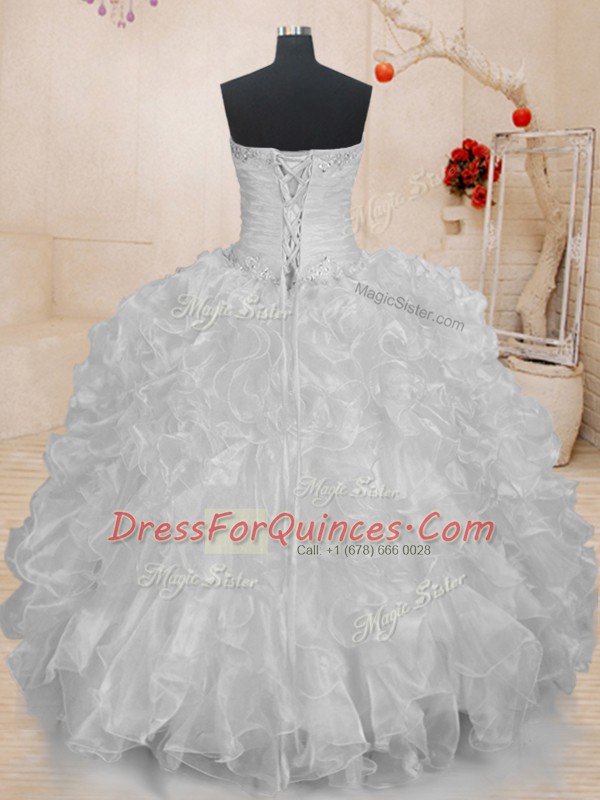 Attractive White Sleeveless Organza Lace Up Quinceanera Dresses for Military Ball and Sweet 16 and Quinceanera