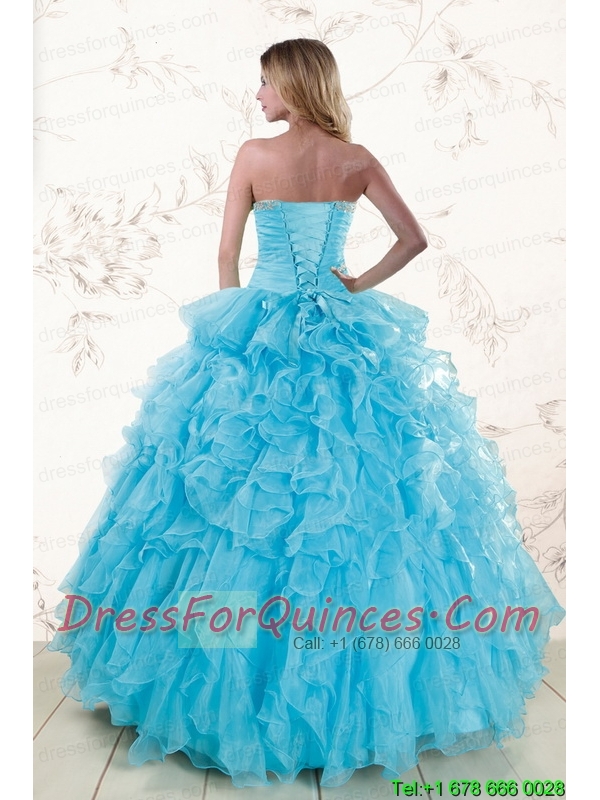 Baby Blue 2015 Prefect Beading and Ruffles Quinceanera Dresses
