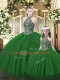Beauteous Halter Top Sleeveless Lace Up Sweet 16 Dresses Dark Green Tulle