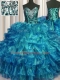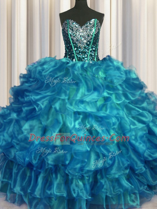 Beauteous Teal Sleeveless Organza Lace Up 15 Quinceanera Dress for Military Ball and Sweet 16 and Quinceanera