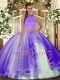 Best Lavender Backless Quinceanera Dresses Beading and Ruffles Sleeveless Floor Length