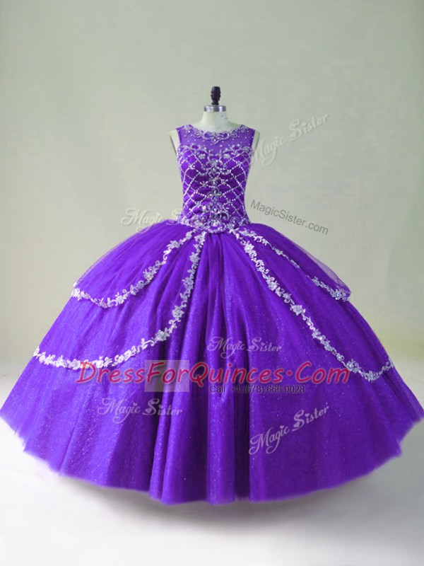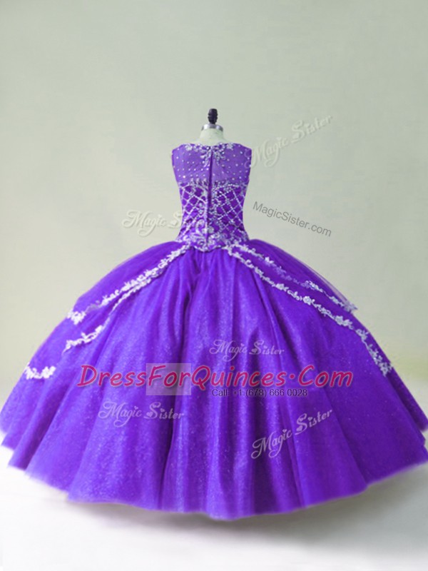 Best Selling Ball Gowns Sweet 16 Quinceanera Dress Purple Scoop Tulle Sleeveless Floor Length Zipper
