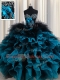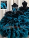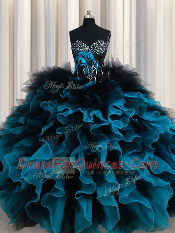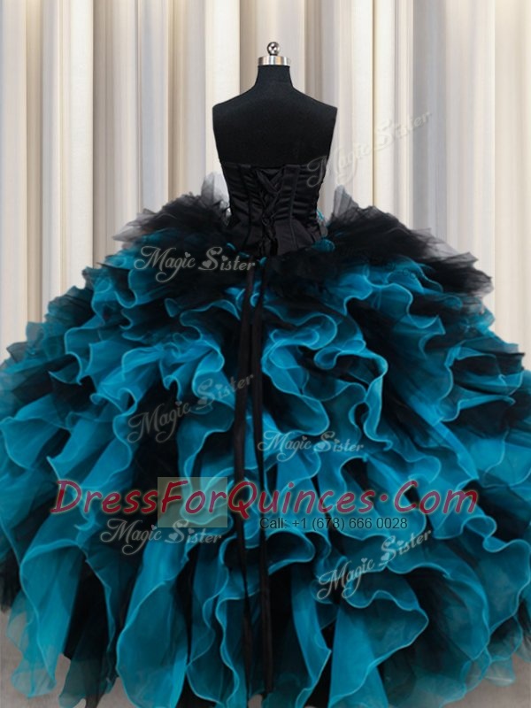Black and Blue Sweetheart Lace Up Beading and Ruffles and Hand Made Flower Sweet 16 Dresses Sleeveless