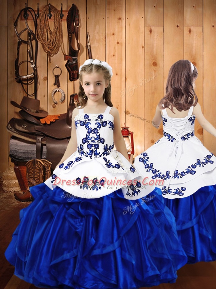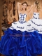 Blue 15 Quinceanera Dress Military Ball and Sweet 16 and Quinceanera with Embroidery and Ruffles Strapless Sleeveless Lace Up
