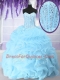 Blue Ball Gowns Sweetheart Sleeveless Organza Floor Length Lace Up Beading and Ruffles 15 Quinceanera Dress