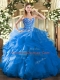 Blue Sleeveless Floor Length Embroidery and Ruffles Lace Up Sweet 16 Dress