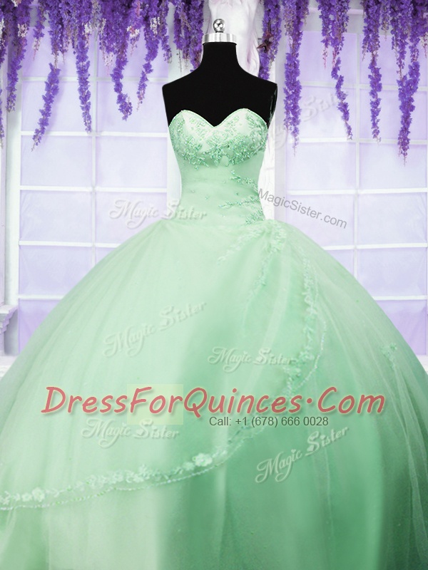 Charming Ball Gowns Tulle Sweetheart Sleeveless Appliques Floor Length Lace Up 15th Birthday Dress