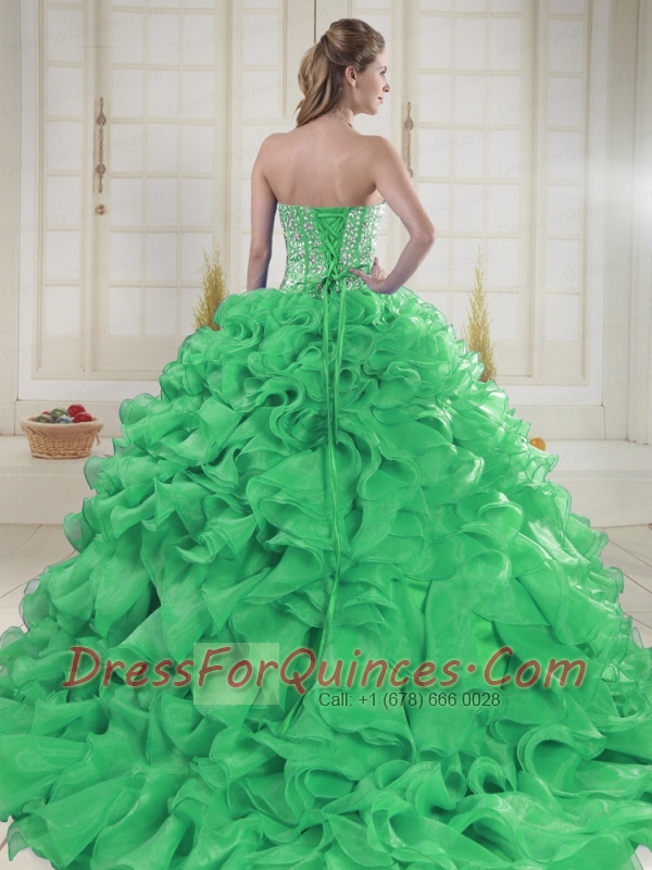 Cheap Sweetheart Brush Train Green Quinceanera Dresses in Sweet 16