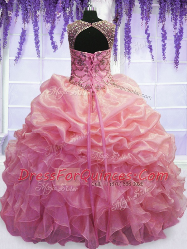 Classical Scoop Sleeveless Beading and Pick Ups Lace Up Sweet 16 Quinceanera Dress