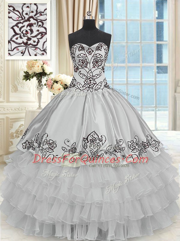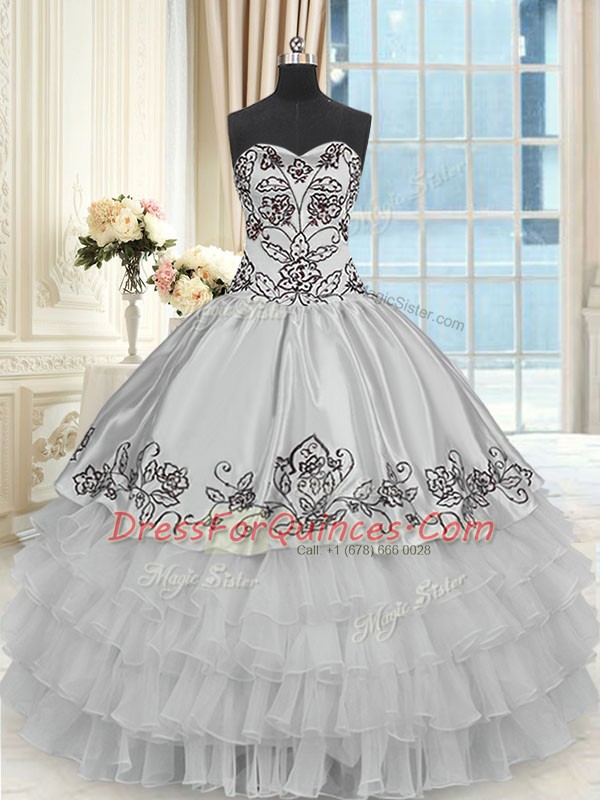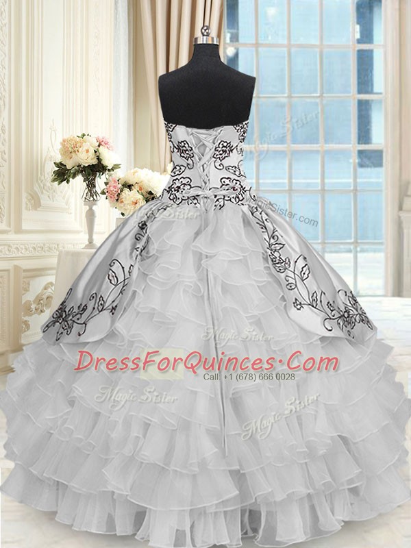 Comfortable Ruffled Ball Gowns Quinceanera Gown Grey Halter Top Organza and Taffeta Sleeveless Floor Length Lace Up