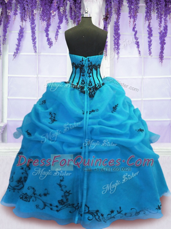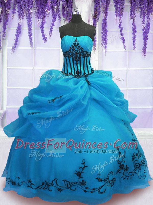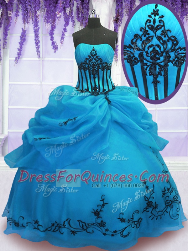 Custom Made Blue Strapless Lace Up Embroidery Quinceanera Gowns Sleeveless