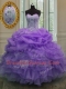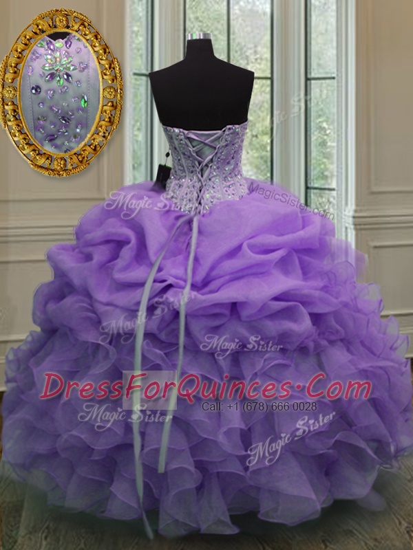 Customized Pick Ups Sweetheart Sleeveless Lace Up 15th Birthday Dress Lavender Organza