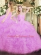 Customized Sleeveless Beading and Ruffles Lace Up 15th Birthday Dress