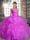 Cute Lilac Ball Gowns Organza Off The Shoulder Sleeveless Beading and Ruffles Floor Length Lace Up Quinceanera Gowns