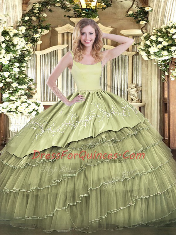 Dazzling Floor Length Ball Gowns Sleeveless Olive Green Ball Gown Prom Dress Zipper