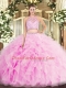 Decent Scoop Sleeveless Quinceanera Dresses Floor Length Beading and Ruffles Lilac Tulle
