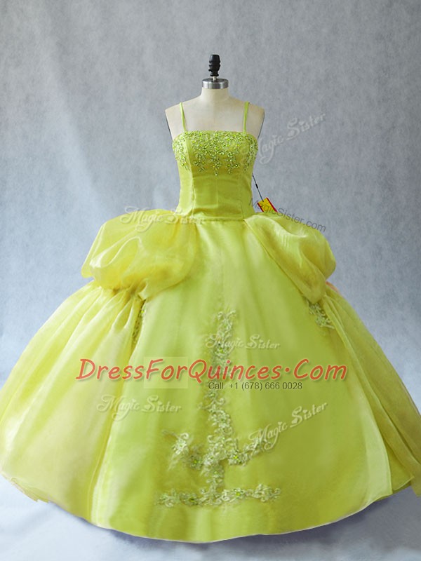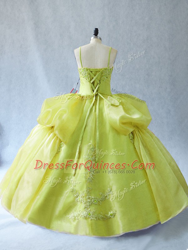 Delicate Ball Gowns Quinceanera Gown Yellow Green Straps Organza Sleeveless Floor Length Lace Up
