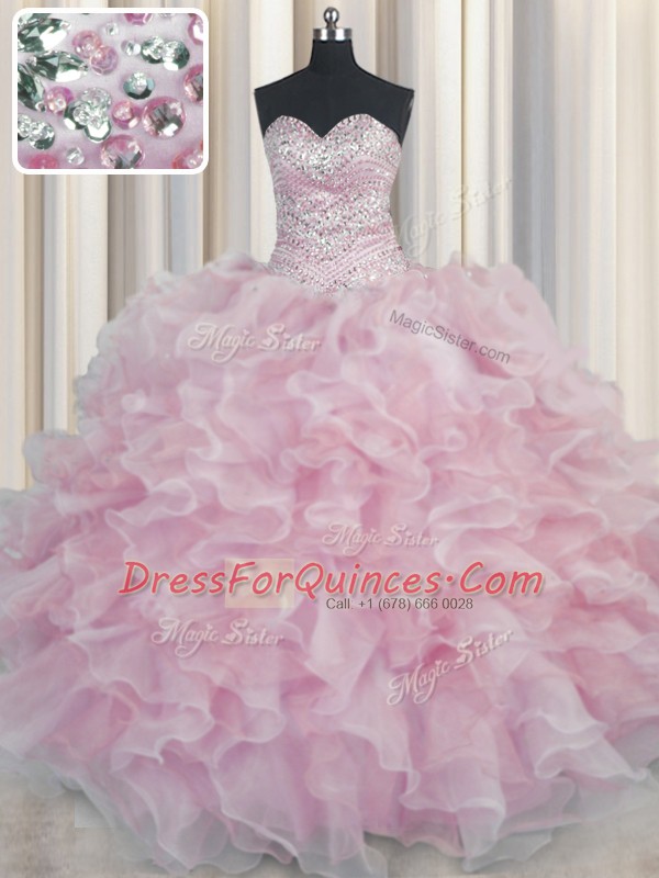 Delicate Bling-bling Organza Sleeveless Floor Length 15 Quinceanera Dress and Beading and Ruffles