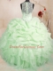 Deluxe Yellow Green Sweet 16 Dress Military Ball and Sweet 16 and Quinceanera and For with Beading and Ruffles and Pick Ups Straps Sleeveless Zipper