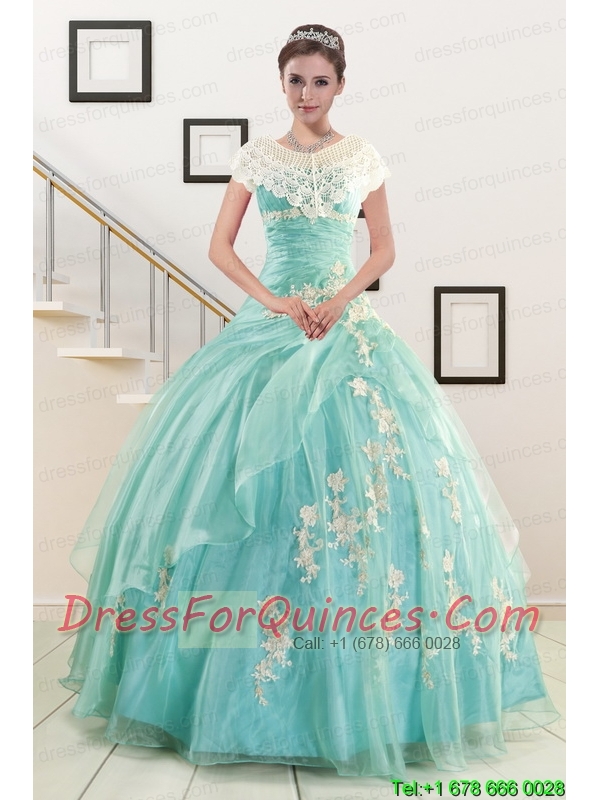 Discount Blue Quinceanera Dresses with Appliques for 2015