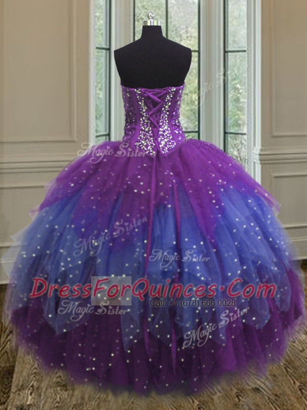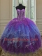 Dramatic Multi-color Sleeveless Floor Length Beading and Ruffles and Sequins Lace Up Quinceanera Dress