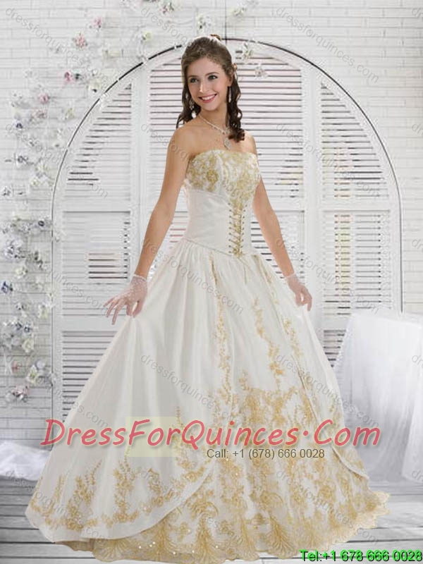 Elegant A Line Strapless Quinceanera Dresses with Embroidery