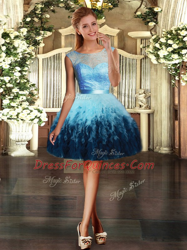 Enchanting Multi-color Sleeveless Lace and Ruffles Floor Length 15th Birthday Dress