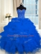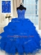 Exceptional Royal Blue Sleeveless Organza Lace Up Quinceanera Dress for Military Ball and Sweet 16 and Quinceanera