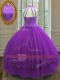 Extravagant High-neck Sleeveless Lace Up Quinceanera Gown Purple Tulle