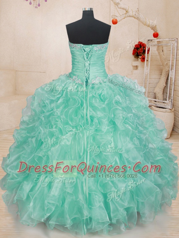 Fancy Apple Green Sleeveless Organza Lace Up Quinceanera Gown for Military Ball and Sweet 16 and Quinceanera