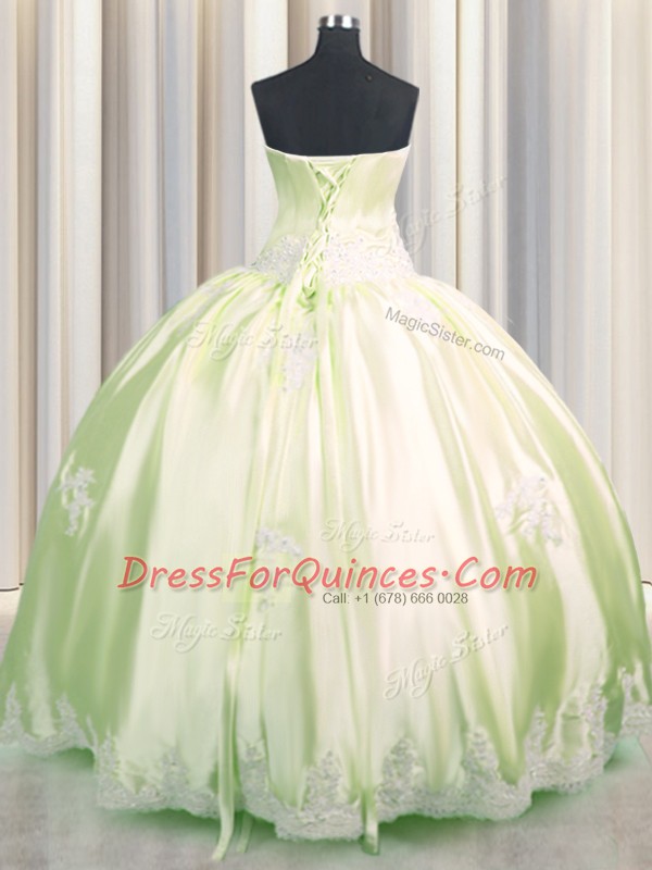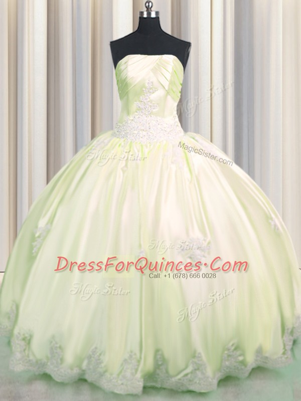 Fashion Ball Gowns Quinceanera Dresses Light Yellow Strapless Taffeta Sleeveless Floor Length Lace Up