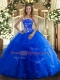 Fashion Strapless Sleeveless Tulle 15th Birthday Dress Beading and Ruffles Lace Up