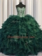 Fine Bling-bling Sweetheart Sleeveless Organza 15th Birthday Dress Beading and Ruffles Brush Train Lace Up