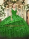 Fitting Green Ball Gowns V-neck Sleeveless Satin and Tulle Floor Length Zipper Beading and Embroidery and Ruffled Layers Quinceanera Dresses