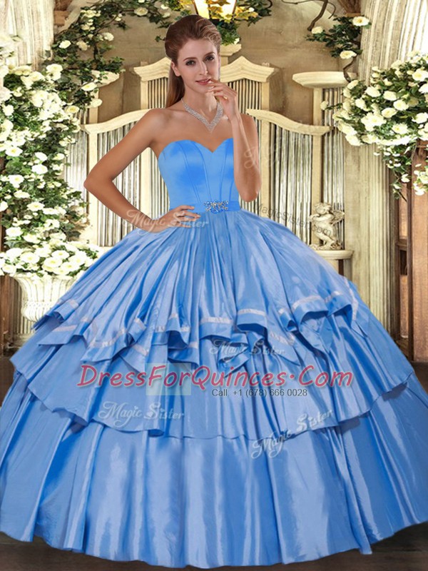 Flirting Baby Blue Ball Gowns Taffeta Sweetheart Sleeveless Beading and Ruffled Layers Floor Length Lace Up Quince Ball Gowns