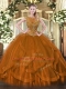 Floor Length Brown Sweet 16 Dress Scoop Sleeveless Zipper