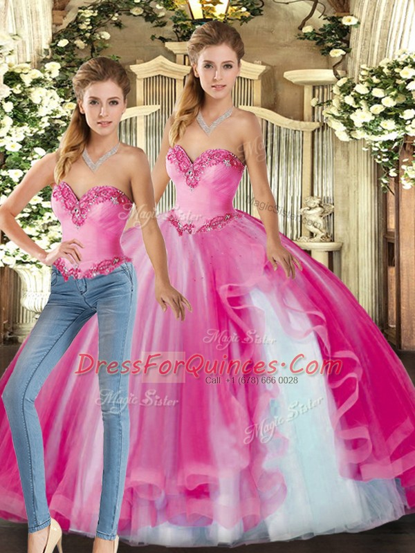 Floor Length Fuchsia Quinceanera Gown Organza Sleeveless Ruffles