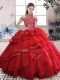 Floor Length Lace Up Sweet 16 Dresses Red for Sweet 16 and Quinceanera with Beading and Ruffled Layers