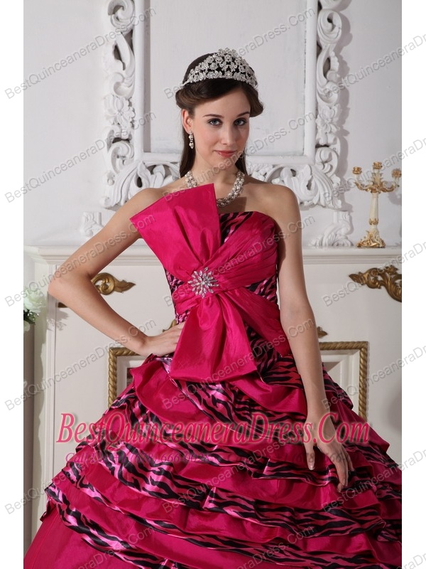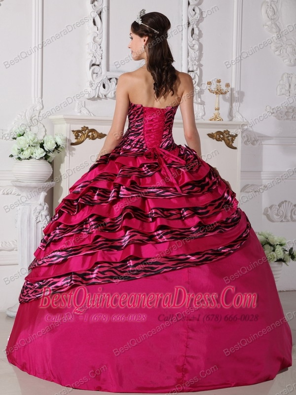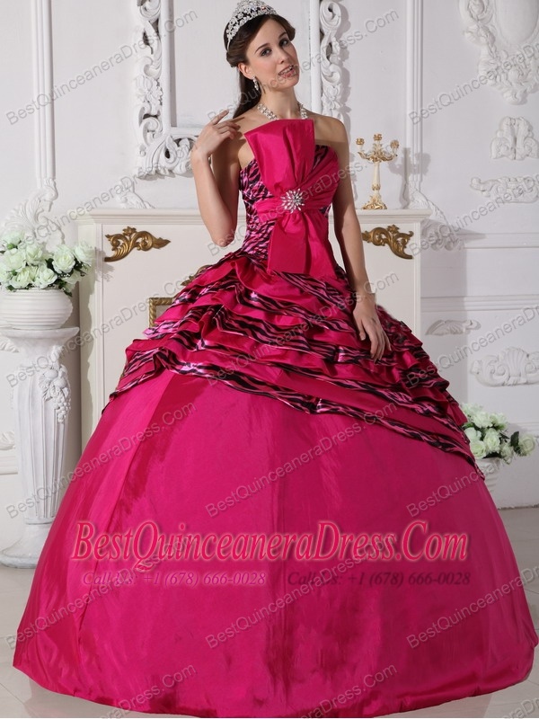 Fuchsia Ball Gown Strapless Floor-length Zebra Beading Quinceanera Dress